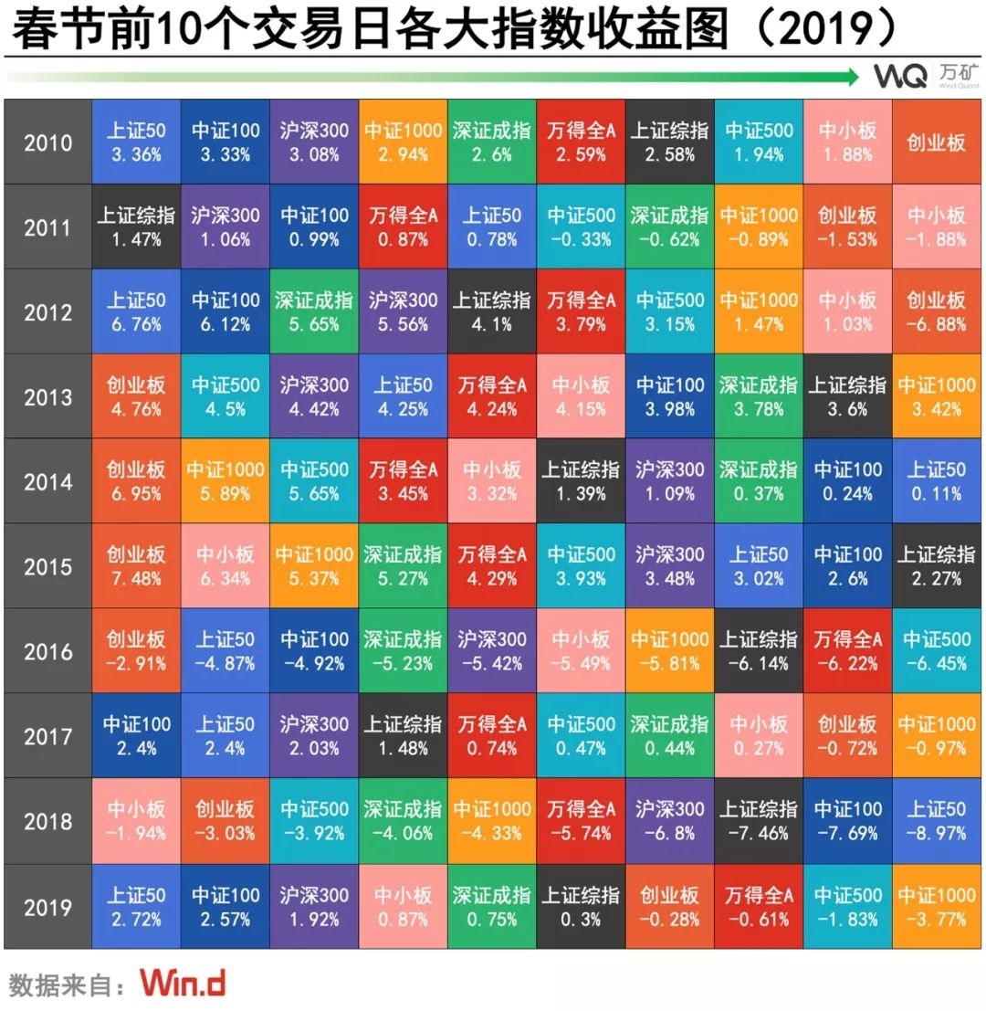 本文主要对2010-2019年期间A股市场的春节效应进行实证研究,包括指数层面和行业层面: