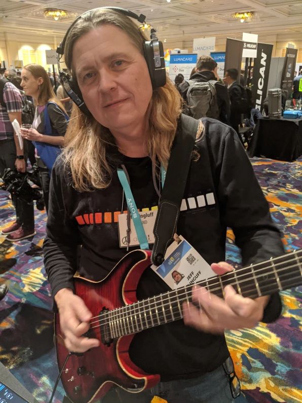 “无声”演奏: 今年,电子乐器制造商Roland比往年更加抢眼,它在CES现场展示了一款概念电钢琴以及一个智能手机的直播指挥中心。然而,真正俘虏我心的是Bose的Waza-Air耳机,内置电吉他扩音器,还有一个可插入任意电器的无线发射器。通过蓝牙连接手机,可选择不同的放大器和音效,或者选择你喜欢的流媒体音乐应用,即兴来一段。这款耳机将于下月上市,售价400美元。
