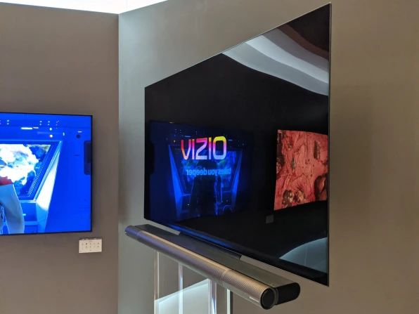 可对接条形音箱:Vizio推出了一款条形音箱,解决了安装方面一个常见的烦恼:在你费尽心思把电视挂上墙之后,要想把音箱挂在电视机下面可不是件容易的事。Vizio P-Series Elevate音箱可以固定在Vizio新出的OLED电视底部,省去安装支架的时间。现在,我们就等电视行业普及这个想法了。