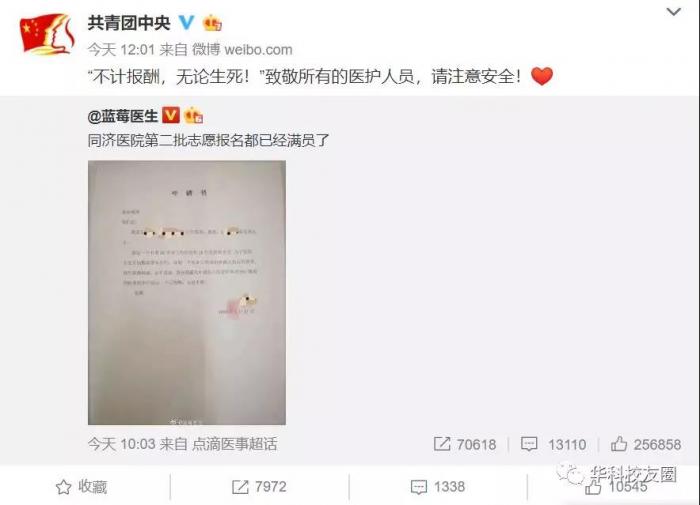 据@蓝莓医生 微博,同济医院第二批志愿报名已经满员。