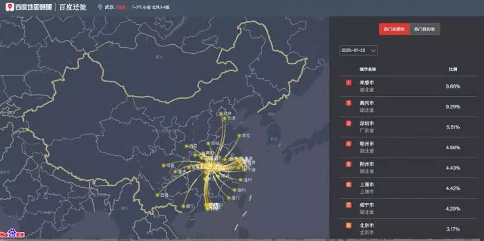 1月23日,21世纪经济报道记者自百度方面了解到,百度地图已更新百度迁徙版本,该升级版本可查看全国除港澳台所有城市的迁徙状况,并将指定城市分析来源和目的地从此前的10个扩展为50个。