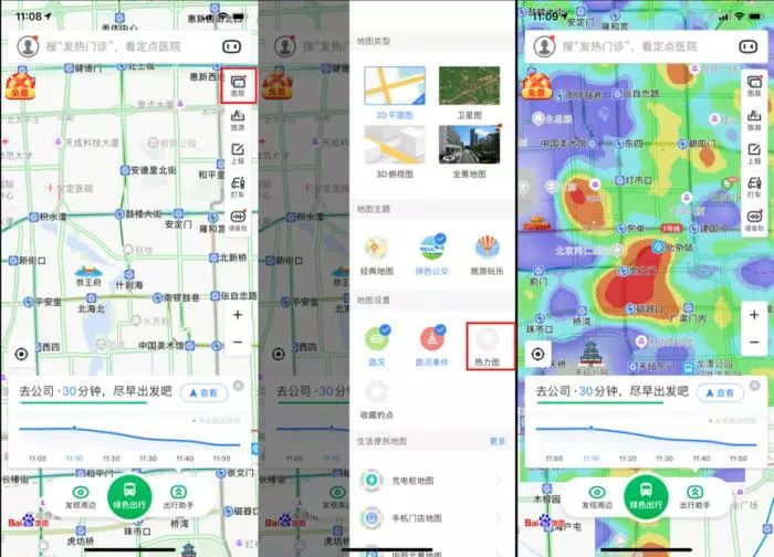 除了迁徙图之外,21世纪经济报道记者自百度方面了解到,目前百度地图可打开热力图图层,可查看到区域实时人口流量密度。防治疫情的重要途径是避免去人多的地方,可通过热力图重点查看商圈、交通枢纽等地区人流量。
