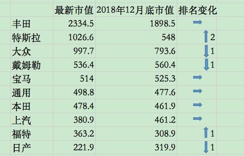 相反,戴姆勒、宝马、福特和日产都有明显下降。戴姆勒的目前市值为520亿欧元,下滑29%;宝马目前市值为480亿欧元,下滑17%;福特目前市值为330亿欧元,下滑34%;日产目前市值则为210亿欧元,下滑36%。