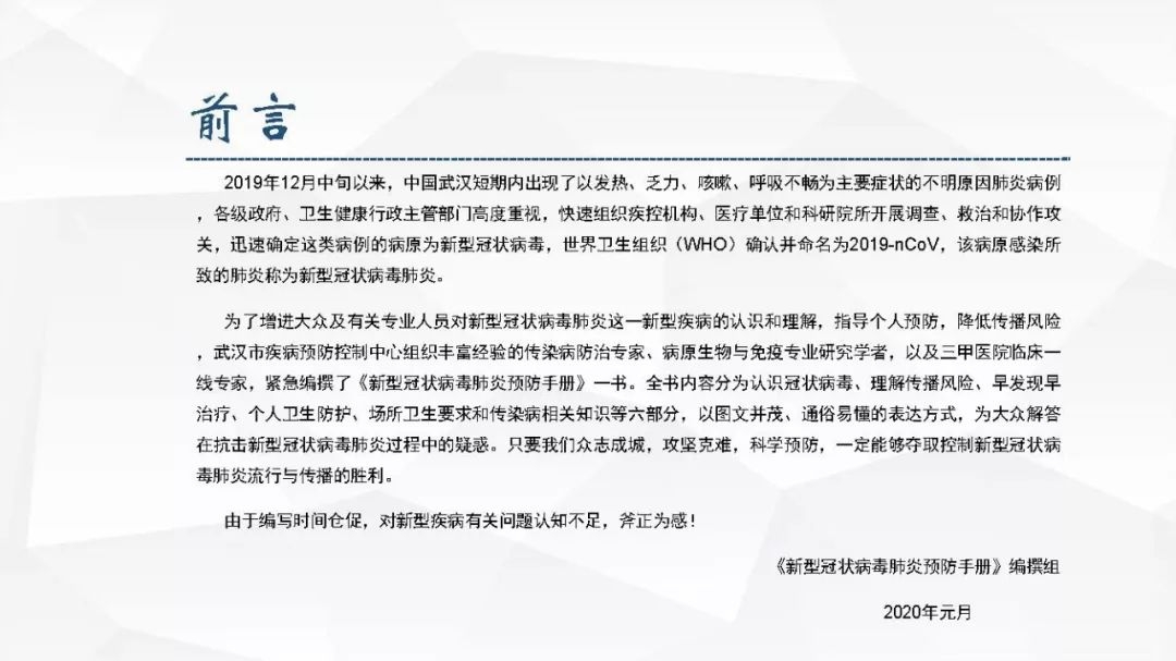 详细PDF可点击下载:新型冠状病毒肺炎预防手册