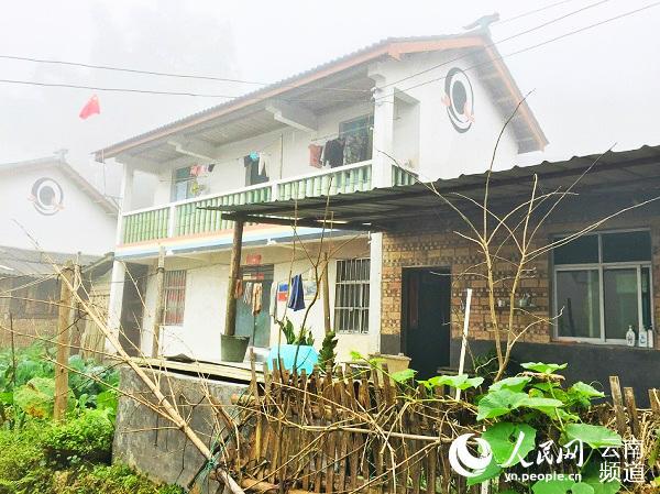 村民的新房,远处五星红旗飘扬。人民网 程浩 摄