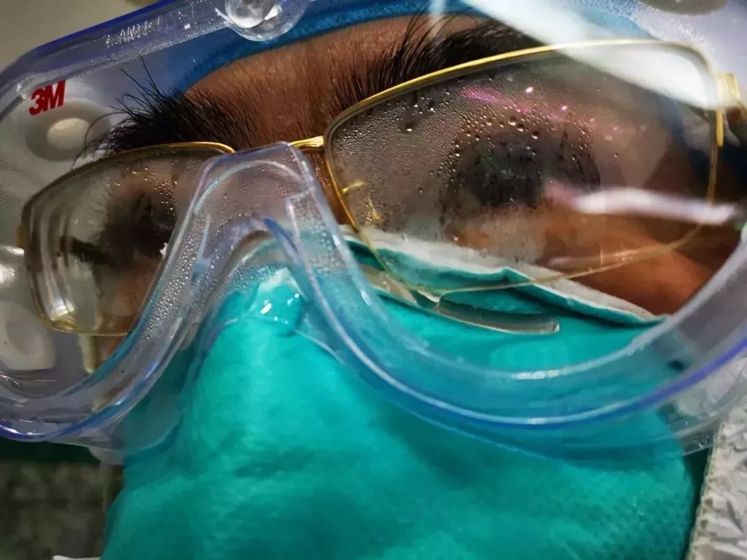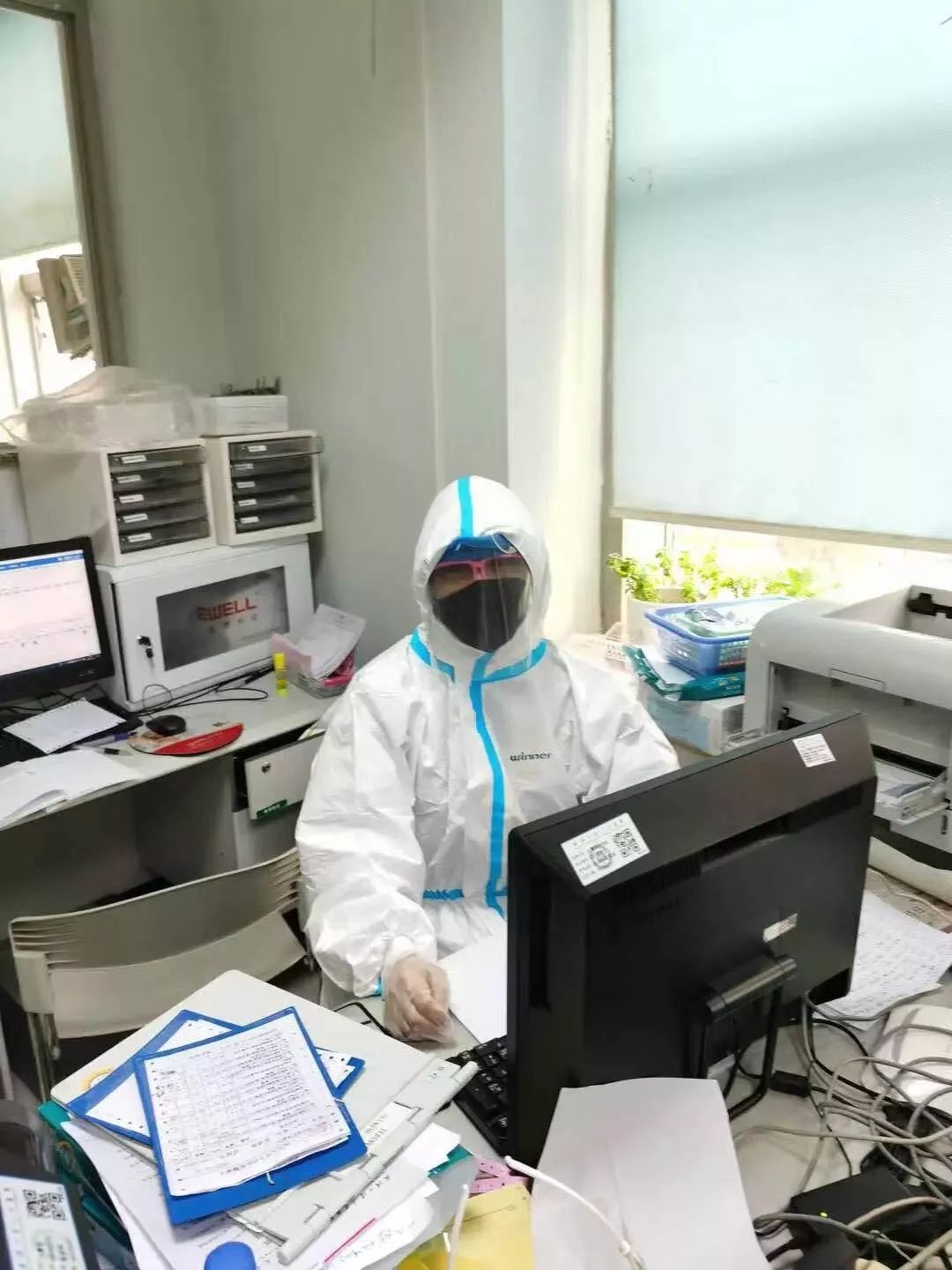 1月21日下午,武汉大学人民医院医生程少华身着防护服超4个小时全身湿透(图:武汉大学人民医院)