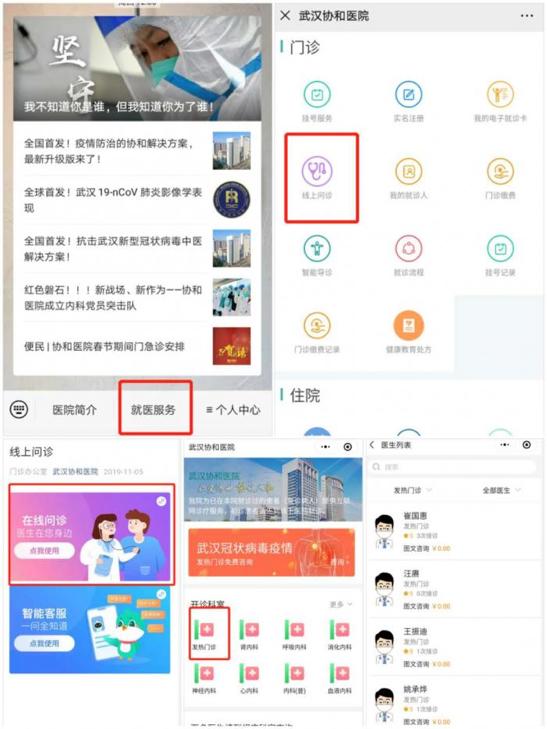 包括武汉协和、同济医院在内的医疗机构开通了新型肺炎发热门诊线上免费咨询业务。