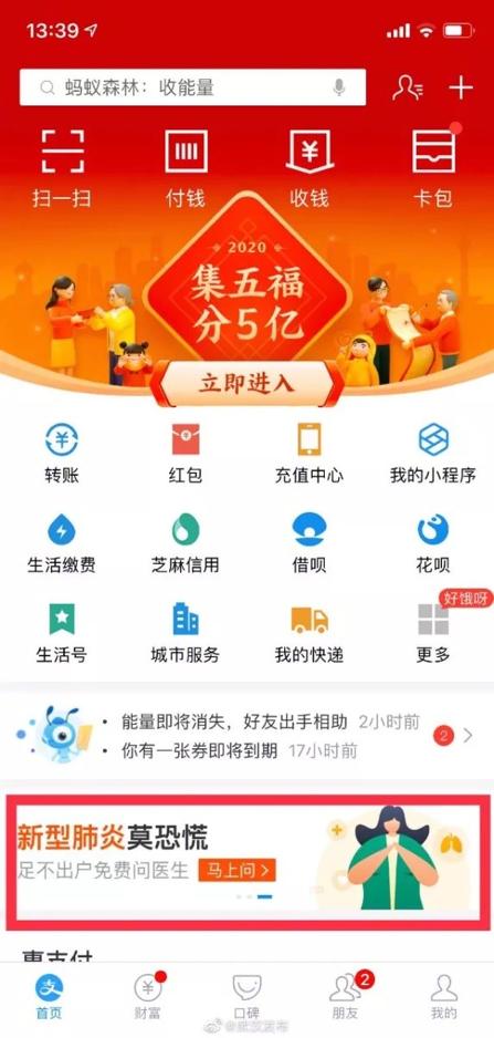 支付宝搜索“问专家”或从支付宝界面下图红框进入。