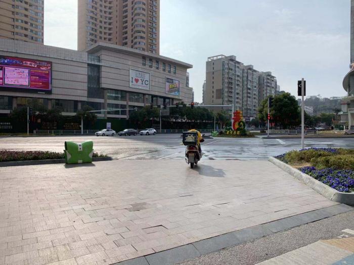 在街面上有少量的私家车及出租车,还有一些美团外卖点评车驰骋而过。往来行人并不多,几乎所有行人都戴上了口罩。