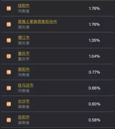 从1月10日开始至今,从武汉回乡的人前三个外省份为湖南、河南、重庆三个地区。其中进入湖南省以长沙市、岳阳市居多,而河南省以驻马店、信阳市居多。