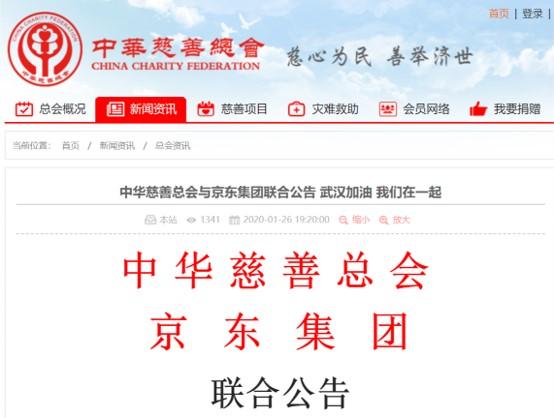 京东上线武汉援助线上捐赠项目,成中华慈善总会首家互联网合作伙伴