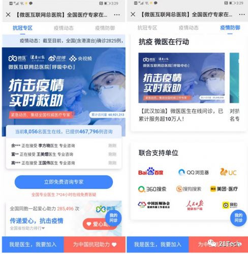 在新浪微博上,自26日上线肺炎防治专区之后,在线问诊服务累计已经服务了超过五十万人。而微信的在线问诊服务,仅仅是武汉协和医院,在小程序上线的前两天就已经接待了2万多起问询。