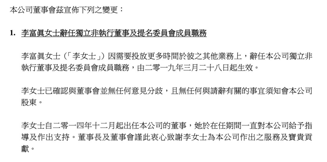 而到了2019年3月28日,李富真又以“需要投放更多时间于彼之其他业务上”为由,辞任中信股份独立董事及提名委员会成员职务,2019年3月28日起生效。期间,李富真作为独立董事的年薪为38万港币,截至2018年年底已领取了153万港币的薪酬。