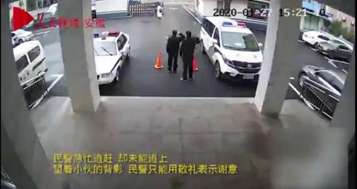 民警未能追上,望着小伙子远去的身影,他们只好抬起手,向他敬了一个礼,以示谢意……