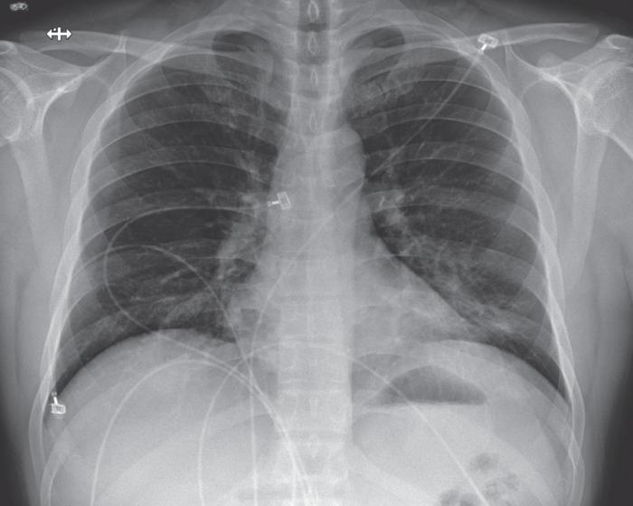 2020年1月24日(患病第5天,住院第9天)的后前胸X线片。