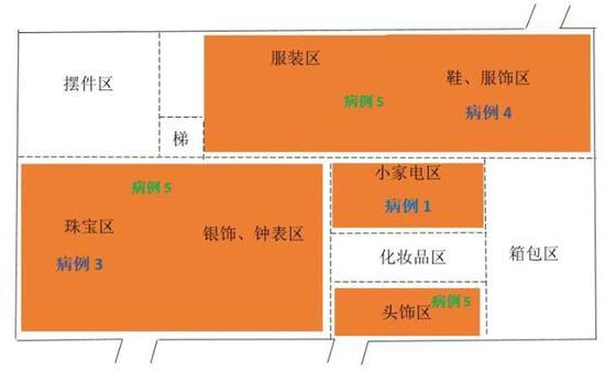 张颖进一步分析说:“虽然第1、3、4例发病的售货员在不同区域工作,但是售货区域在同一楼层,基本是相邻的,没有一个清晰的界限,彼此没有4到5米以上的距离间隔,实际间隔甚至小于1米。在这样一个环境里,一个顾客通过3个小时就被感染,我们可以想象一下,8个小时上班的售货员在这样一个环境里面是避免不了被感染到的。”