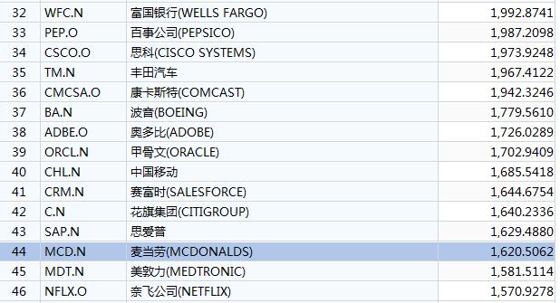 至此,公司总市值已经达到1650亿美元左右,超越麦当劳的1628亿美元,位于所有上市美股的40位左右。