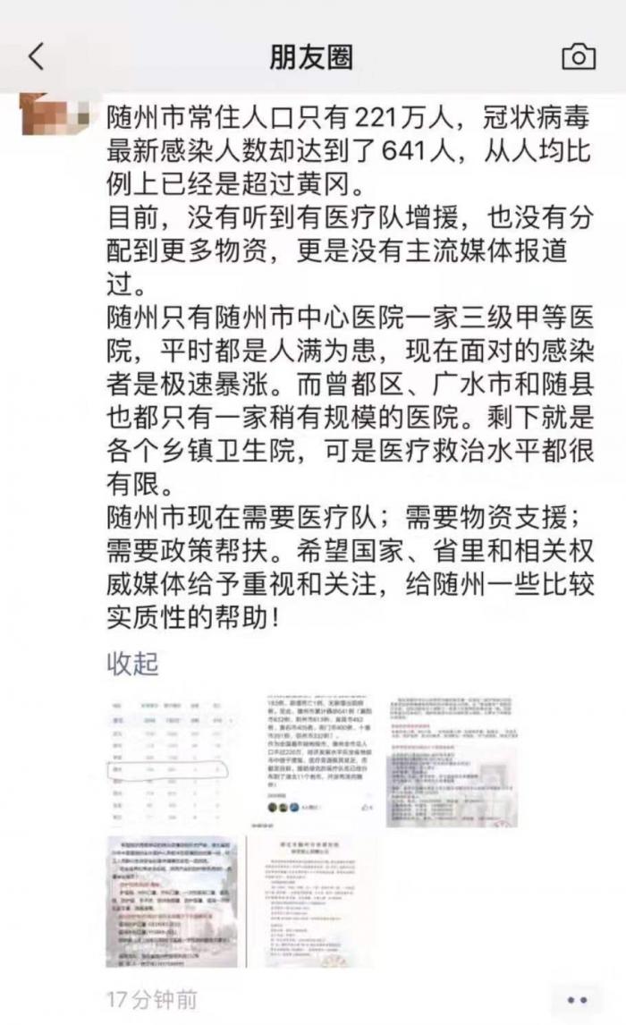 另据了解,随州医院的医生也在联系外援,但对方表示自身的医疗、物资资源也很紧张,所以他们希望更多的社会力量能够关注随州。