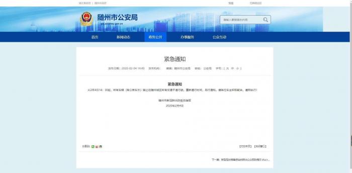1月24日晚间,随州市新型冠状病毒感染的肺炎防控工作指挥部办公室发出封城通知,通知表示,1月24日24时起,随州市区公交、长途客运站暂停运营,高铁站、火车站离开和到达随州市通道暂时关闭。另外对随州市区所有进出城道口进行管控。