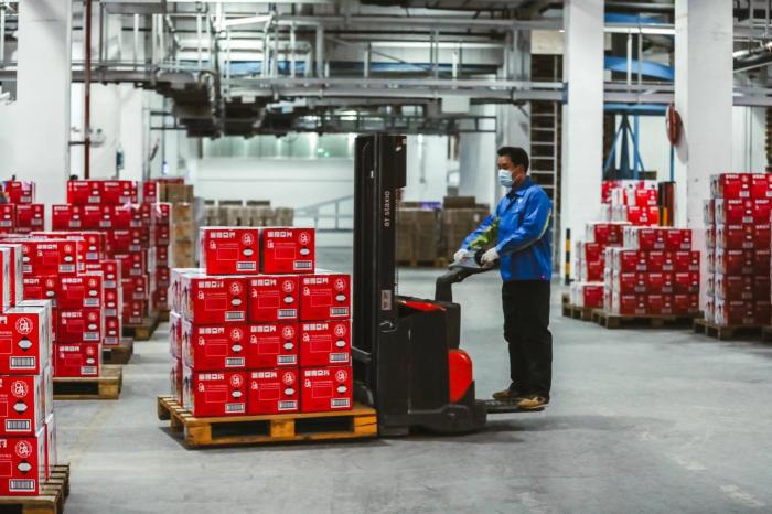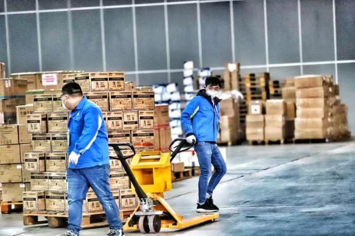 而在出库环节,九州通则根据市防控指挥部下达的指令将物资进行分拣出库,此后相关物资会经由邮政公司完成装车配送,以此形成物流体系的闭环。