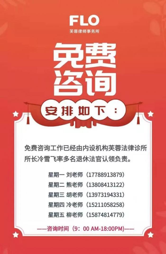 若有其他疑问及详情,联系人 黎曜鋆律师 (电话及微信 13149389419)。芙蓉律所广州办公室免费咨询工作由芙蓉法律诊所认领负责。免费咨询电话如下: