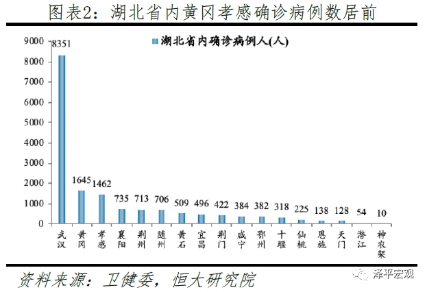 新冠肺炎疫情的发源地在武汉,当前发现的绝大多数病例为武汉输入型,疫情扩散与人口流动显著相关。武汉市现有常住人口约1100万,户籍人口近900万,实际管理人口(含短期流动人口)约1400万,节前从武汉流出的500万人口主要分为非武汉籍高校学生、外来务工经商人员、外来商务旅游人员、反向春运人员、外出旅游人员等。实际上,考虑到武汉的九省通衢位置,节前返乡在武汉中转的人口或还有数百万级,这意味着从武汉流出的人口规模实际更大。根据包括短期流动人口统计的百度地图迁徙大数据,1月10-24日从武汉流出人口的59.1%流入湖北省内其他城市,其中孝感、黄冈、鄂州、咸宁、荆州分分别占12.4%、10.2%、5.5%、5.4%、4.8%。武汉人口的主要流向地也是当前疫情的主要发生地。