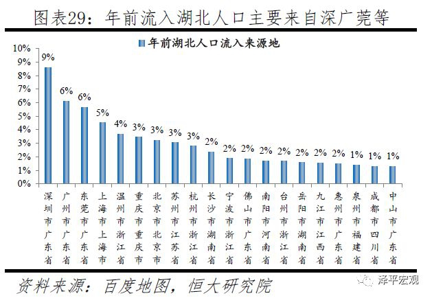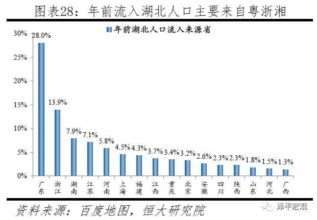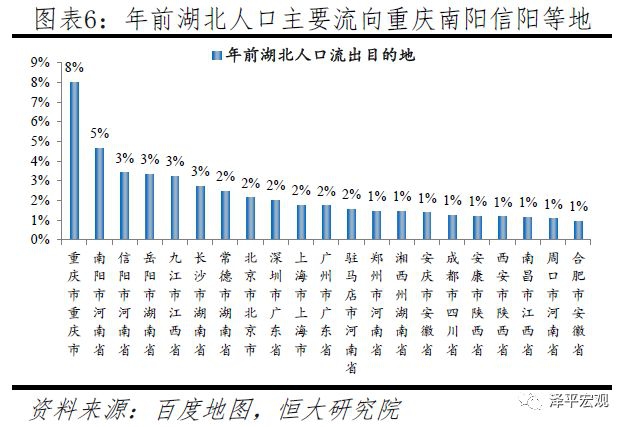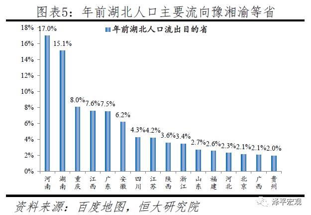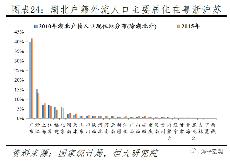 3.1 年后湖北户籍外流人口超5成流向粤浙湘苏豫