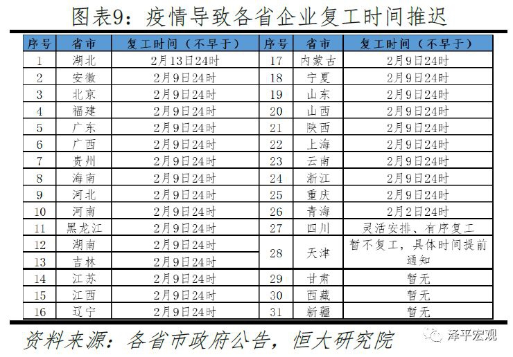 由于疫情爆发,各地企业复工时间明显推迟,国务院将春节假期延至2月2日,多数省份规定企业复工时间不早于2月9日,湖北规定不早于2月13日,这使得返城高峰仍未出现。