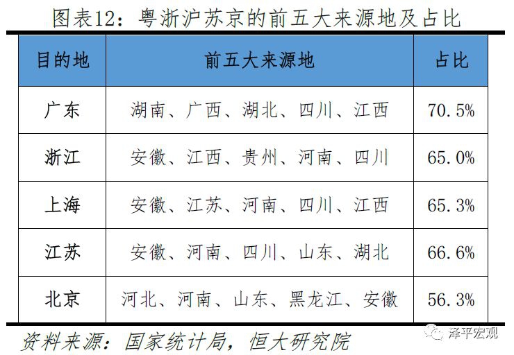 上述粤浙沪苏京五省省际迁移人口占常住人口的比重分别为22.2%、21.2%、39.5%、10.9%、35.5%,远超全国平均的7.1%。