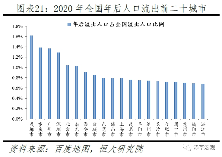 从地级层面看,从湖北流出的人口主要去往重庆、南阳、信阳、岳阳、九江、长沙、常德、北京、深圳、上海等地,前20城合计占比达47.3%。
