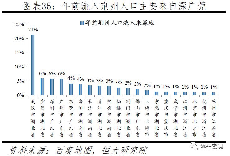 荆州:未来返工人口的42%将流向湖北其他城市,43%将流向广东、湖南、浙江、江苏、福建等5省,35%流向深圳、广州、东莞、岳阳等13个省外城市。