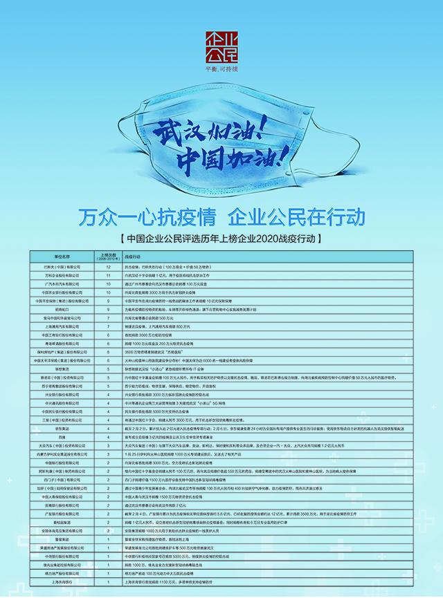 中国企业公民评选历年上榜企业2020战疫行动