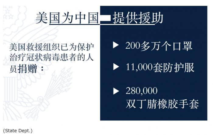 据了解,美国国务院本周为安排向中国运送的近17.8吨捐赠医疗物资提供了便利,这些物资包括口罩、防护衣、纱布、呼吸器以及其他物资。另据媒体报道,这些物资来自美国民间和企业,是由前往中国进行第二轮撤侨的飞机运往中国的。
