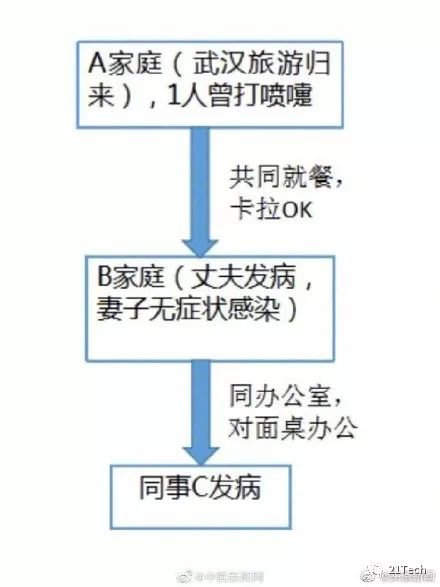 1月24日,B病例家中丈夫发病,同时妻子也被感染。两口子觉得没大事儿,所以还趁着新年假期去给亲戚一家拜年,结果亲戚家一共7个人,从大人到孩子,全都被感染了,目前已经有5个人发病。
