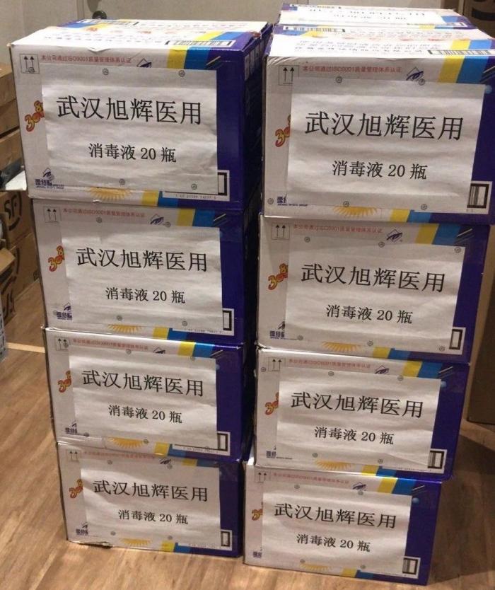 1月28日旭辉抗击肺炎专项基金增援武汉首批物资,1488箱共计74.4万双医用手套,分别到达武汉协和医院、武汉市第三医院、武汉市第九医院、武汉市汉口医院。