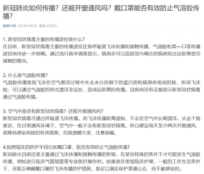 “另外我想强调的是,通风可以将飘浮在空气中的气溶胶病毒颗粒吹散,也能够降低它的密度。所以,在预防病毒气溶胶传播过程中,通风是很重要的一个手段。”