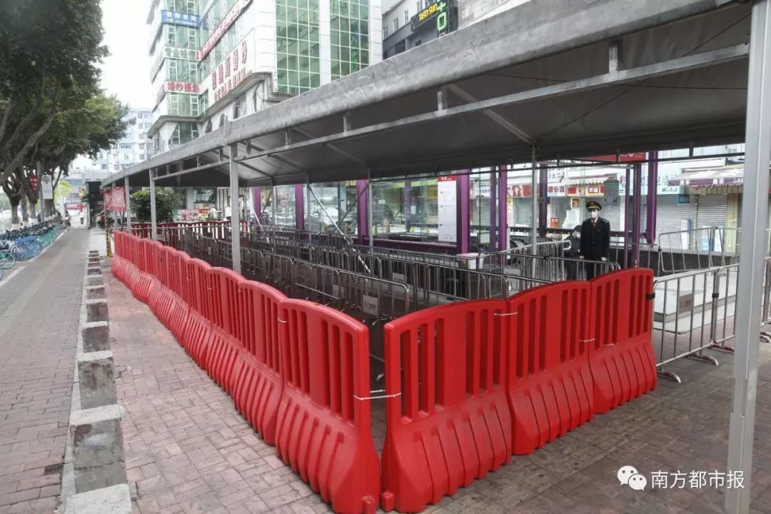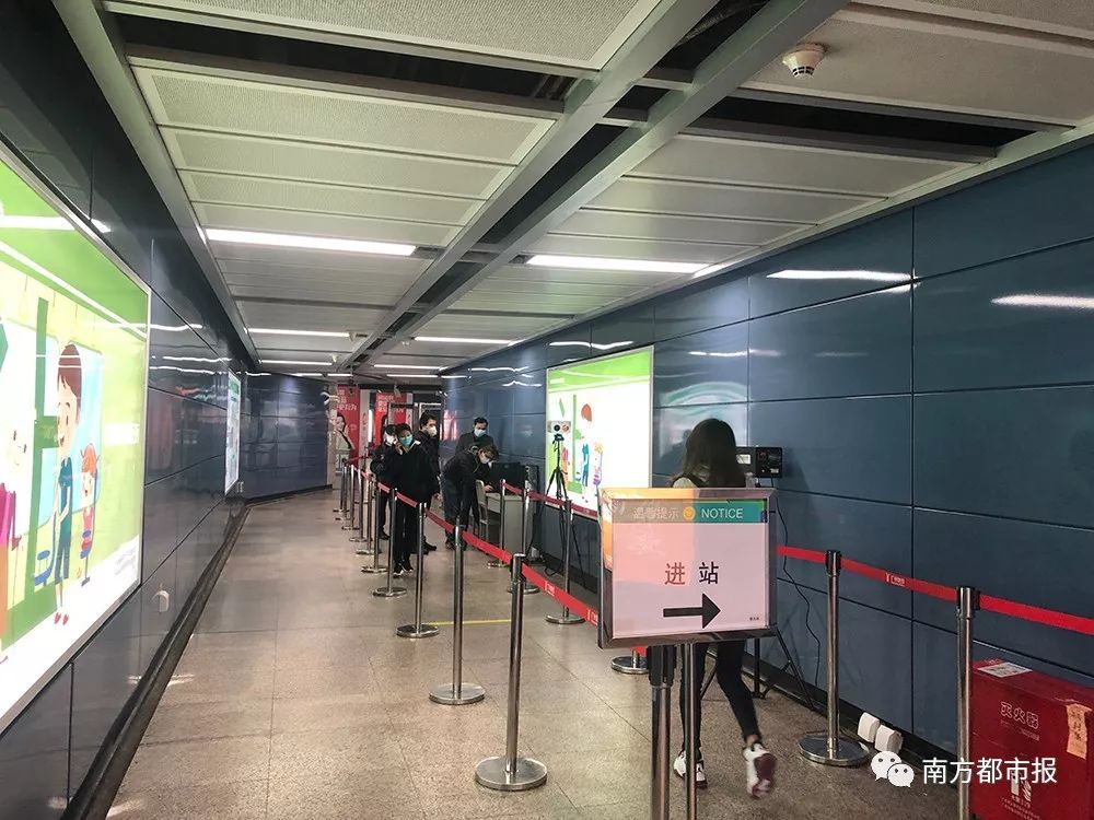上午8点20分,珠江新城站C出口,保安人员在站口准备安检和测体温。