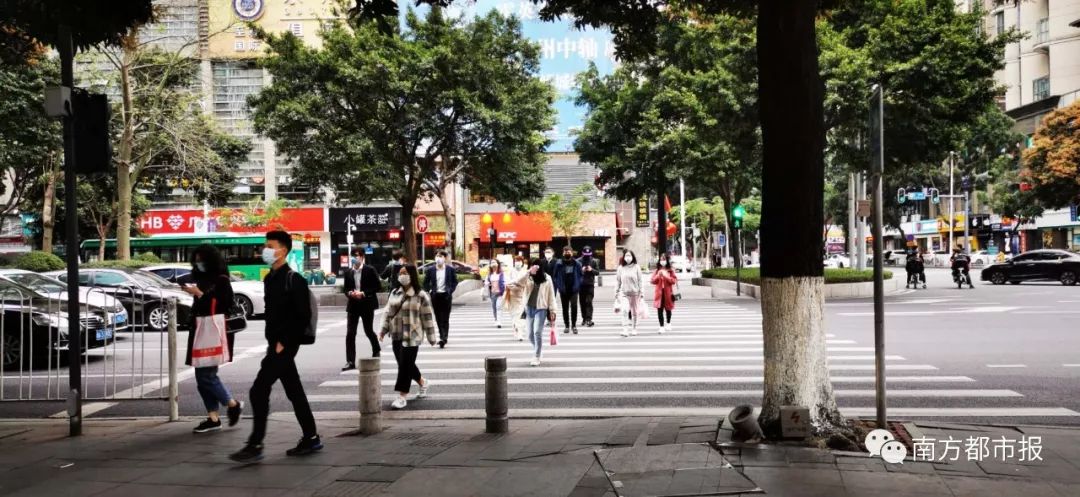 上午8点15分,华成路口上班的人群。