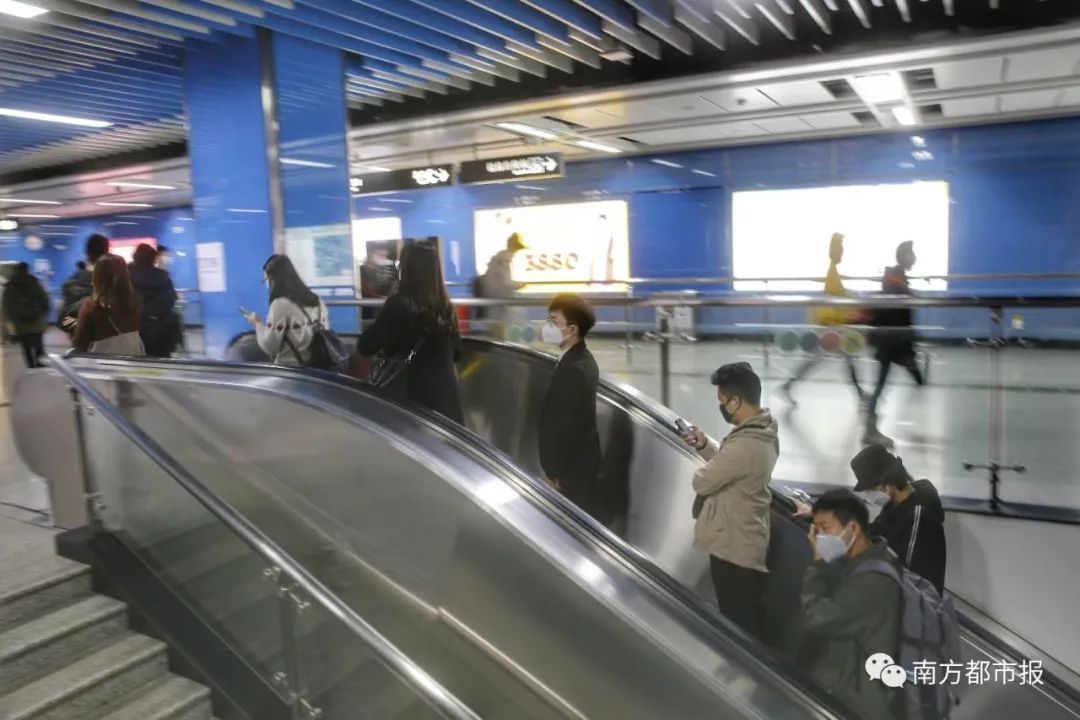 上午8点30分,广州地铁四号线车陂站,出站的乘客。