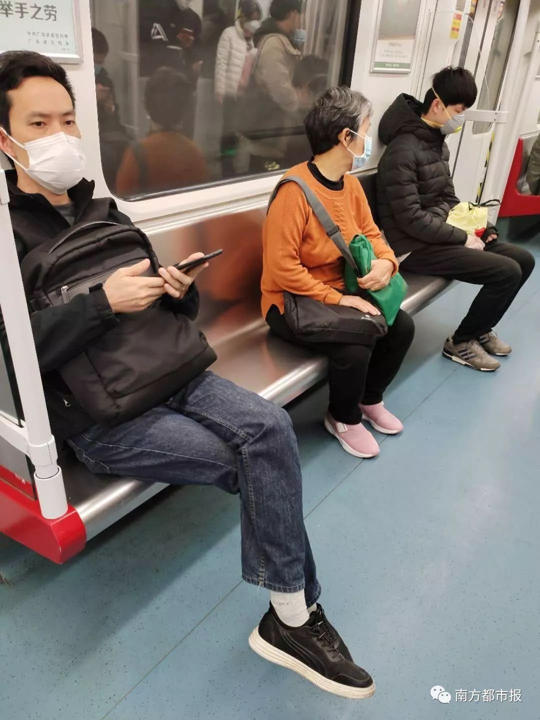 上午8点30分,广州地铁4号线北往南的车厢里。