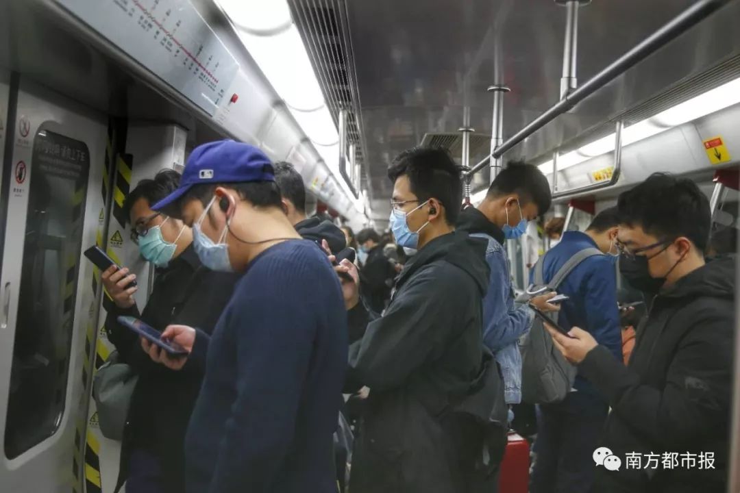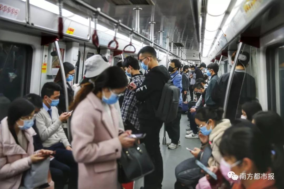 @扣子睡不醒:八点半的深圳地铁…我怎么有点难过,在这座城市里奔忙的人啊,快点恢复正常吧 图据@扣子睡不醒