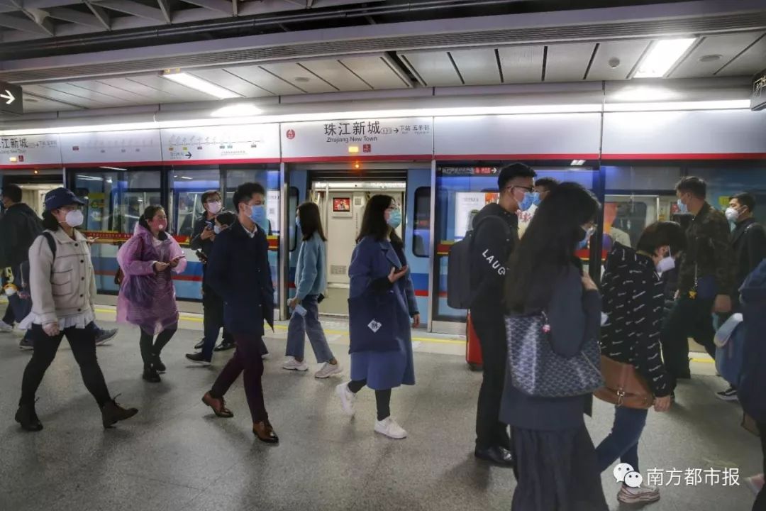 上午8点45分,五号线珠江新城站下车的乘客。