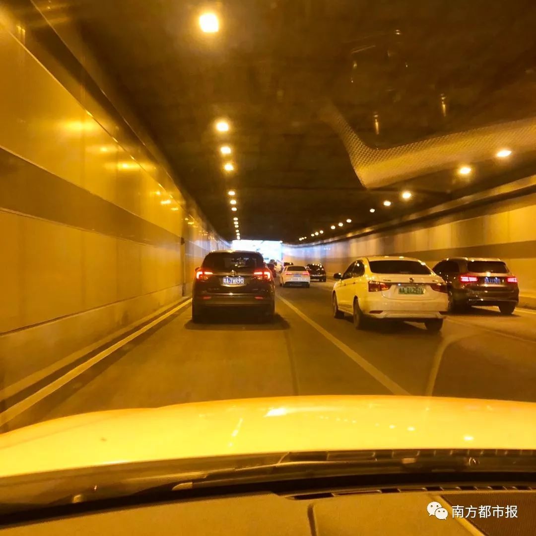 上午8点20分,黄埔大道隧道,车流不少,有点缓慢。