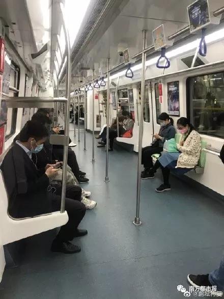 早上8时许,三号线,没有限流,人比平时周末少,大家自动隔开。