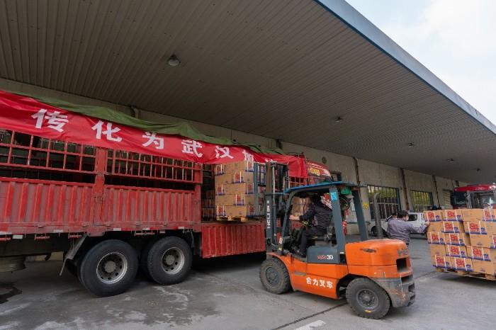 疫情发生以来 ,作为全国化布局的物流平台,面对抗疫物资急需的物流保障,传化集团旗下传化智联线上线下全国联动,整合仓储、运力、配送、支付服务、智能信息服务等资源及服务,提供运力对接并全面开放全国27个省市自治区50余个公路港城市物流中心的仓储资源,为各类抗疫救援物资免费提供超过20万方的仓储服务。截至目前,通过传化打通的绿色物流通道,已有100万副手套、101.5万个口罩、8000箱(桶)消毒液、1500箱医疗原材料及药品、呼吸机、消毒泡腾片、食品等600余吨紧急医疗物资,运抵武汉、孝感、黄冈、宜昌、成都等地。