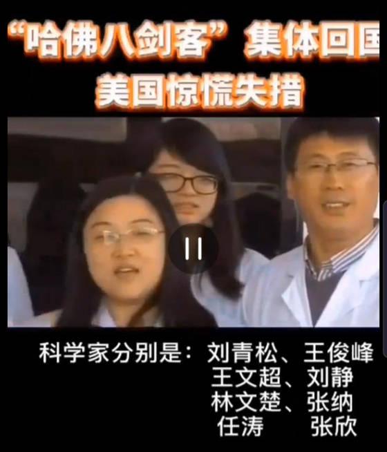 2月9日,网传一段“哈佛八剑客回国援助武汉”的视频,视频画面中出现8位科学家,其中数人还合唱了歌曲《我的中国心》。视频配文称“哈佛八剑客集体回国,美国惊慌失措,8位顶尖科学家集体回国,国家兴亡,匹夫有责”,引起不少网友转发。