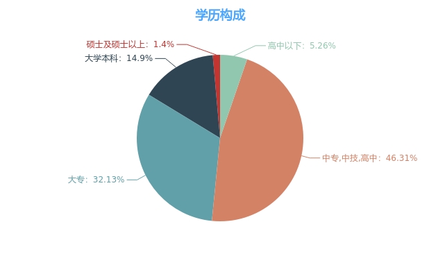 截至2018年12月31日,公司员工总人数为3632人,员工架构如下: