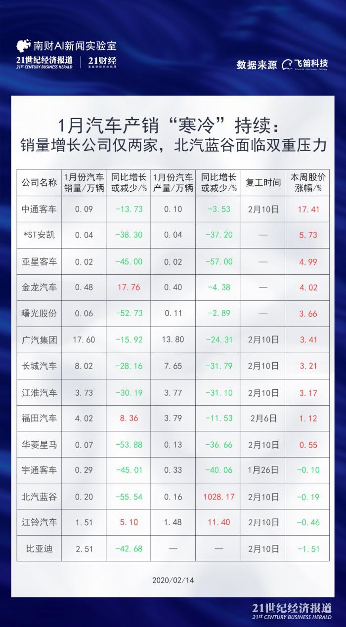 1月汽车产销“寒冷”持续:销量增长公司仅两家