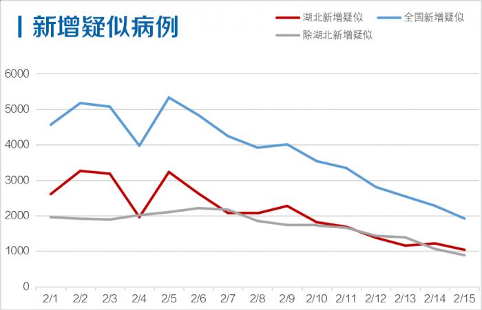 截至2月15日24时,全国现有疑似病例8228例,较14日8969例下降8.26%,连续7日下滑;其中湖北现有疑似病例数为5243例,较14日5534例下降5.26%。