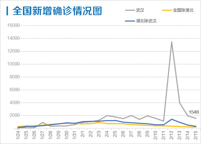 据国家卫健委关于新型冠状病毒肺炎通报的最新数据,截至2月15日24时,31个省(自治区、直辖市)和新疆生产建设兵团新增确诊病例2009例(累计68500例),现有确诊病例57416例,新增疑似病例1918例(现有8228例),新增重症病例219例(现有11272例),新增治愈出院病例1323例(累计9419例),新增死亡病例142例(累计1665例)。